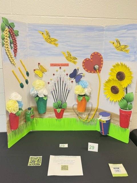 Display of recycled nursing supplies in the shape of a garden vase. 36 inches x 36 inches.