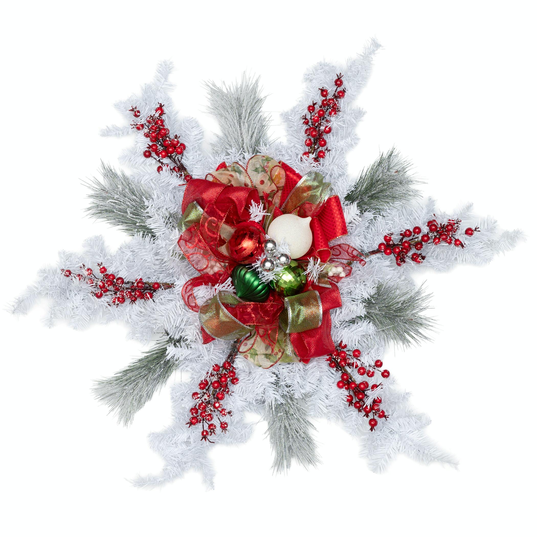 White star-shaped wreath with accents of traditional Christmas red and green. Created by Pam West.