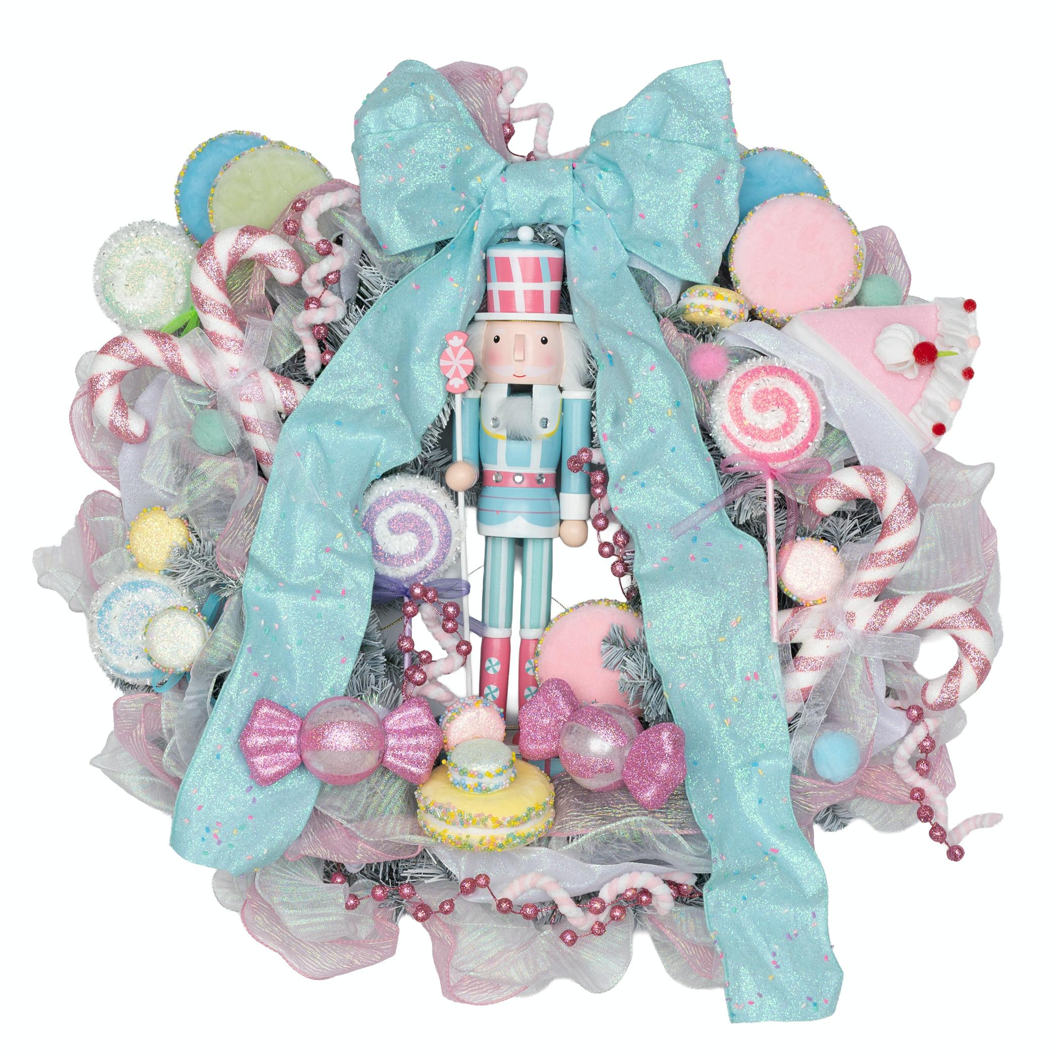 This festive candy nutcracker themed wreath bursts with holiday cheer and whimsical charm. A sweet addition to the magic of the season. Created by Traci Viscarra, Kayla Samuel, Stephanie Mayor, and Christian Calhoun.