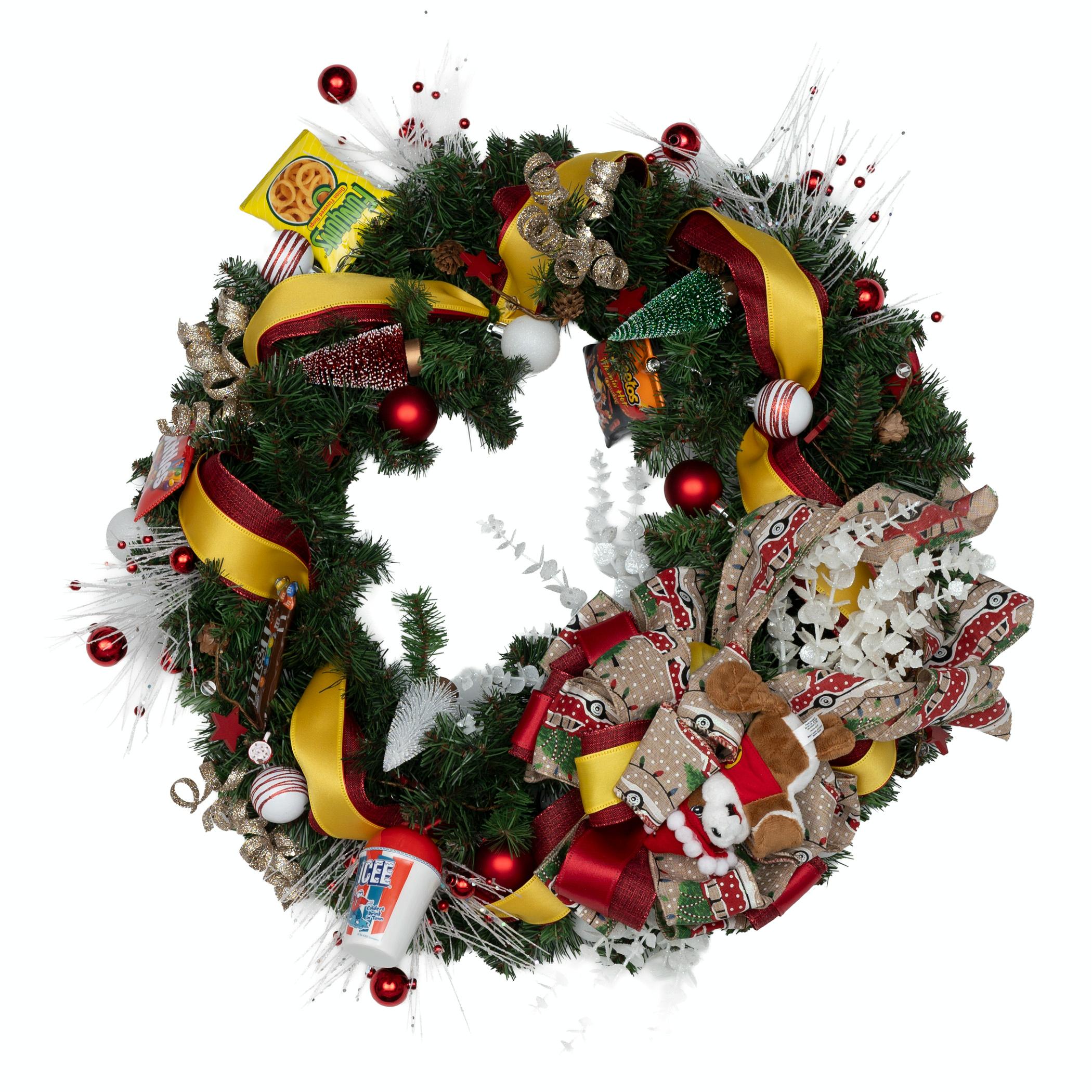It wouldn't be the holidays without a good old-fashioned road trip! It wouldn't be a road trip without a stop for your favorite snacks! Hang this wreath up to enjoy the festive anticipation of visiting family and friends without having to "hold it" until the next exit. This wreath includes a $25 gift card for stocking up for your next snack stop! Created by Annalise Eary, Karen Chen & Marina Niemann