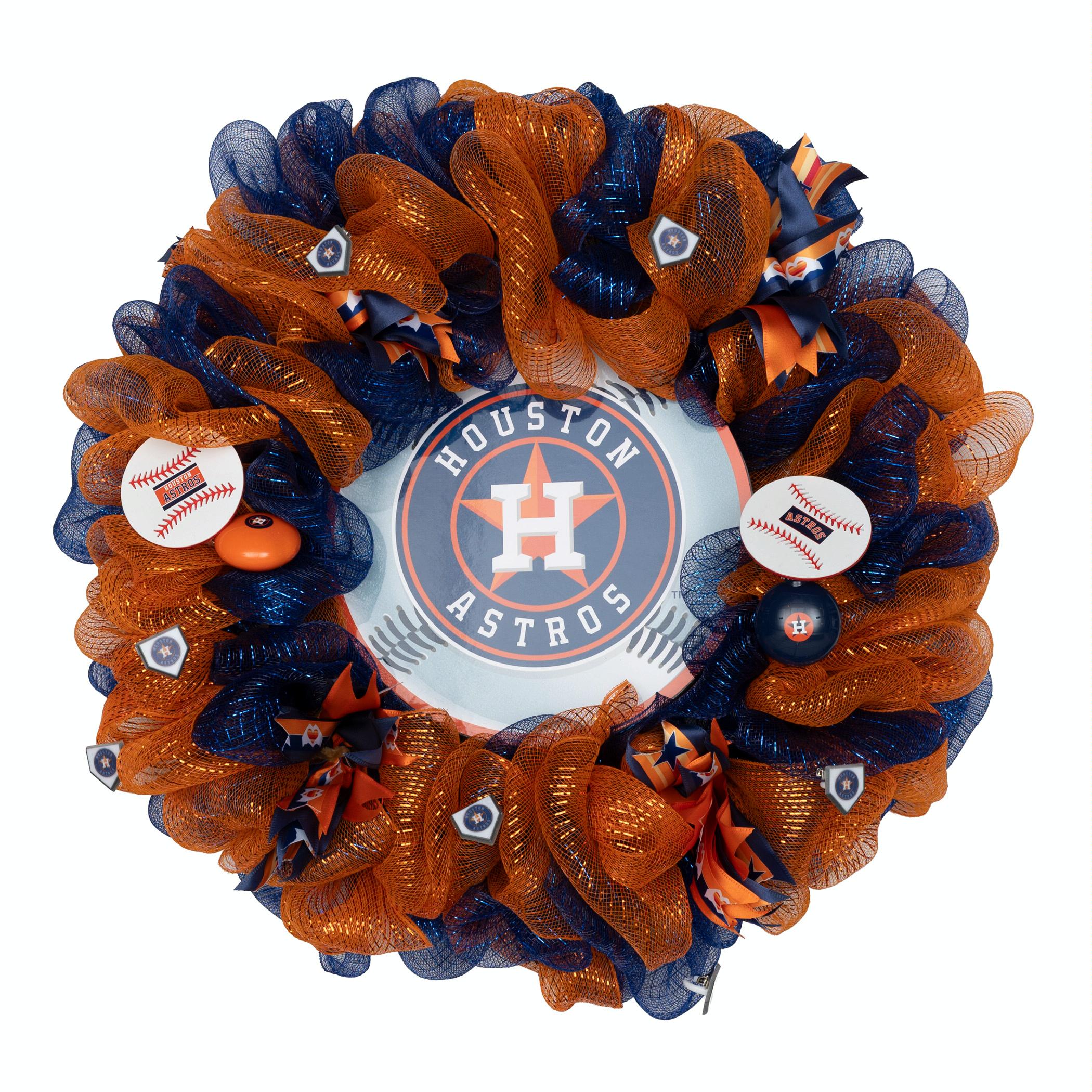 This Houston Astros wreath can be displayed all baseball season! Perfect for a man cave, gift-giving, or to show your Astros support on your door. Designed by Moderia Horn with the Division of Surgery. Includes a Houston Astros Jose Altuve bobblehead.