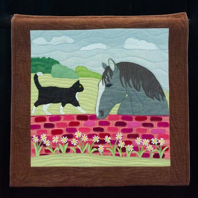 A delightful quilt for a child's room. A landscape quilt both pieced and appliqued. Created by Patricia Lemon.