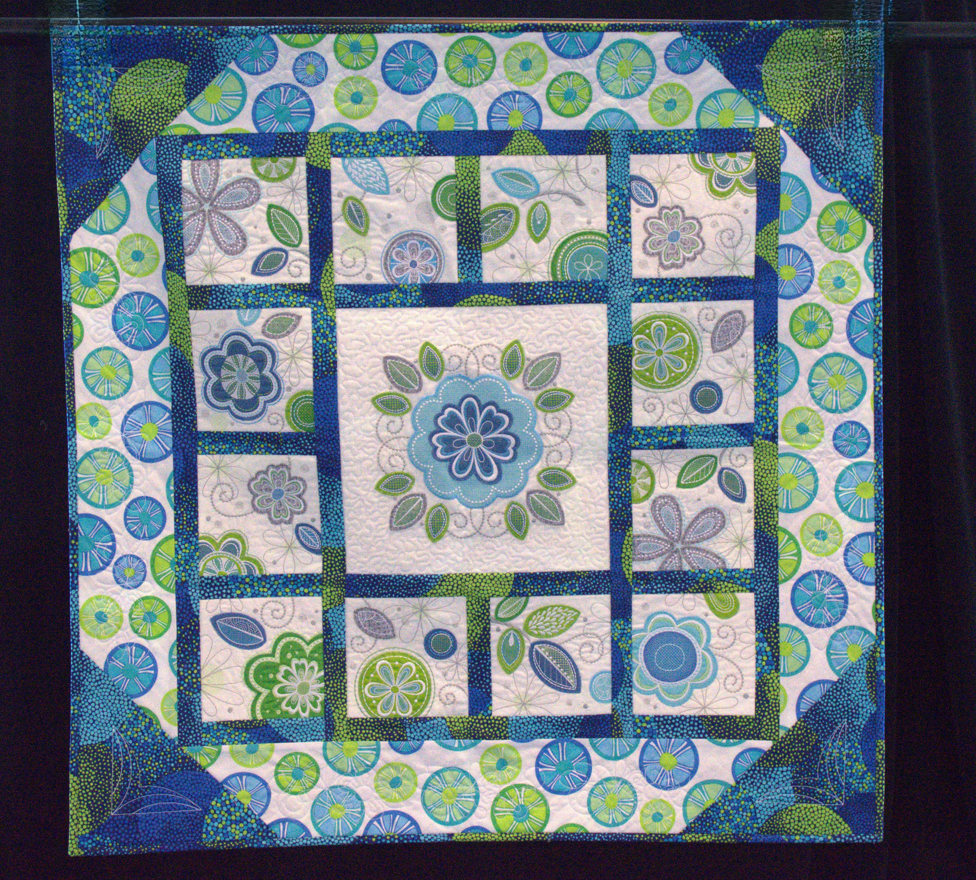 Floral blocks created with machine embroidery. Created by Lorraine Wilkins.