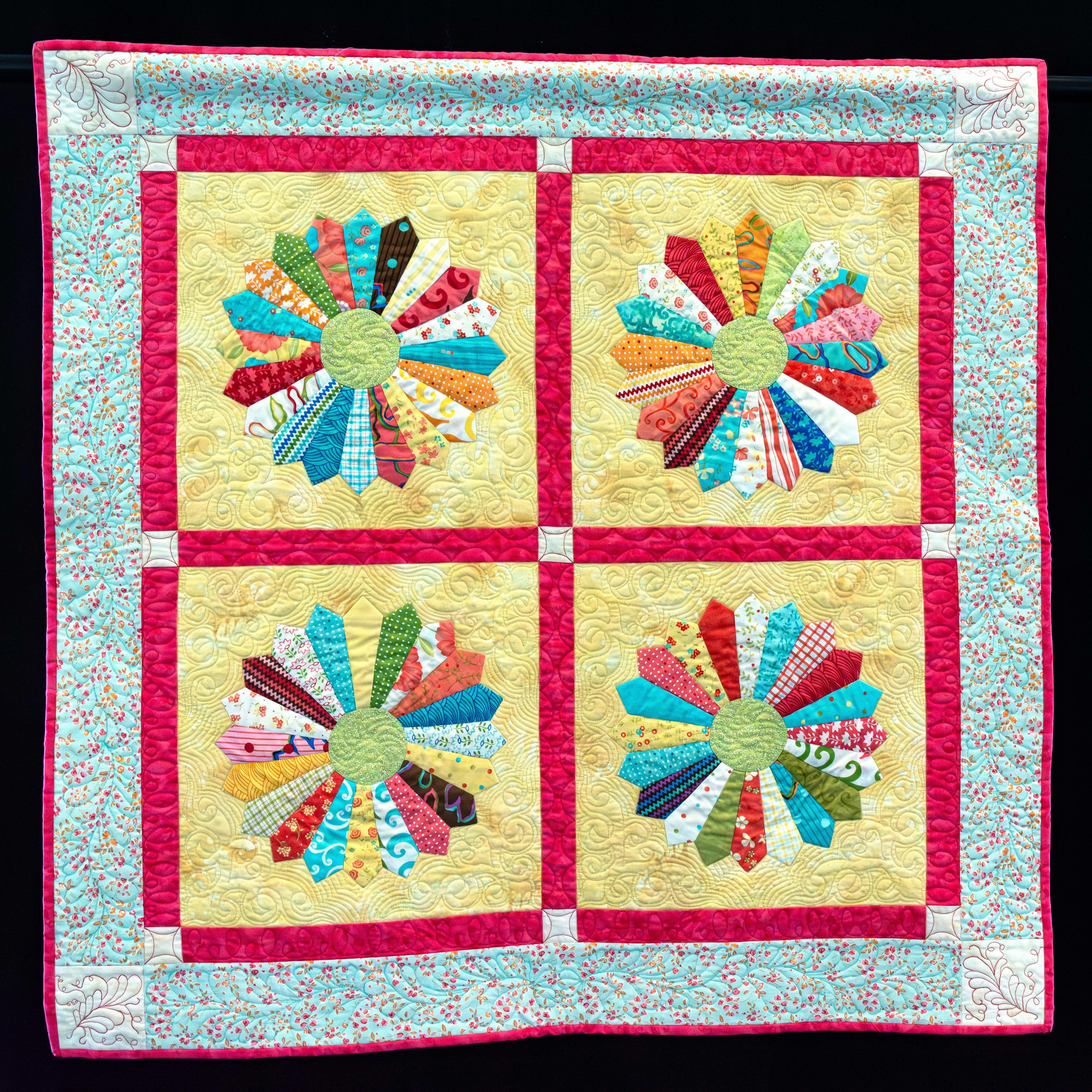 Classic Dresden Plate pattern in springtime glory. Perfect for a young girl's room as a wall hanging. Created by Kathy Yeldezian.