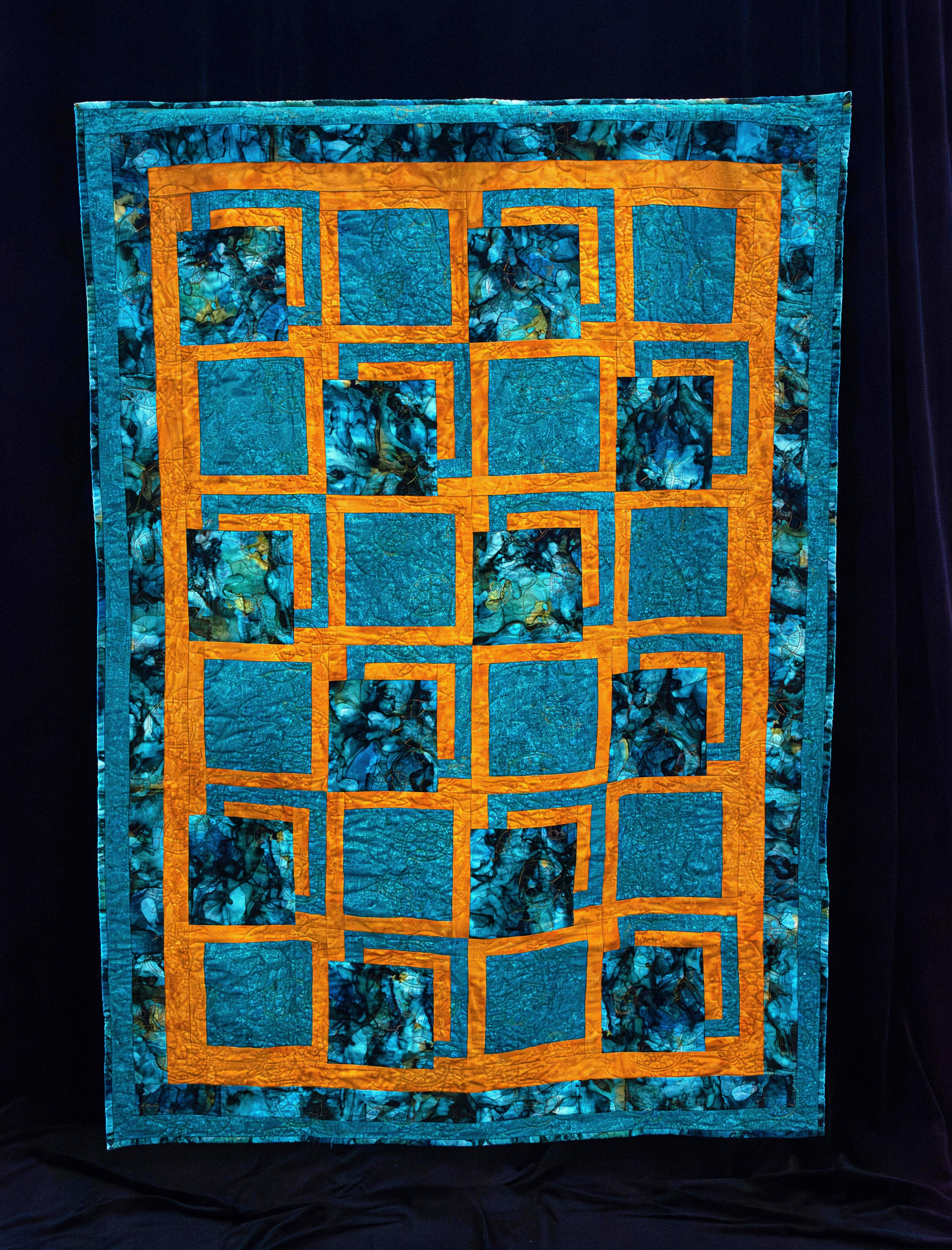 A lovely teal and gold quilt to warm you on cold days. Created by Tammy Conn.