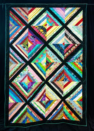 Black Diagonal string quilt. Created by Carolina Mountain Longarm Association.