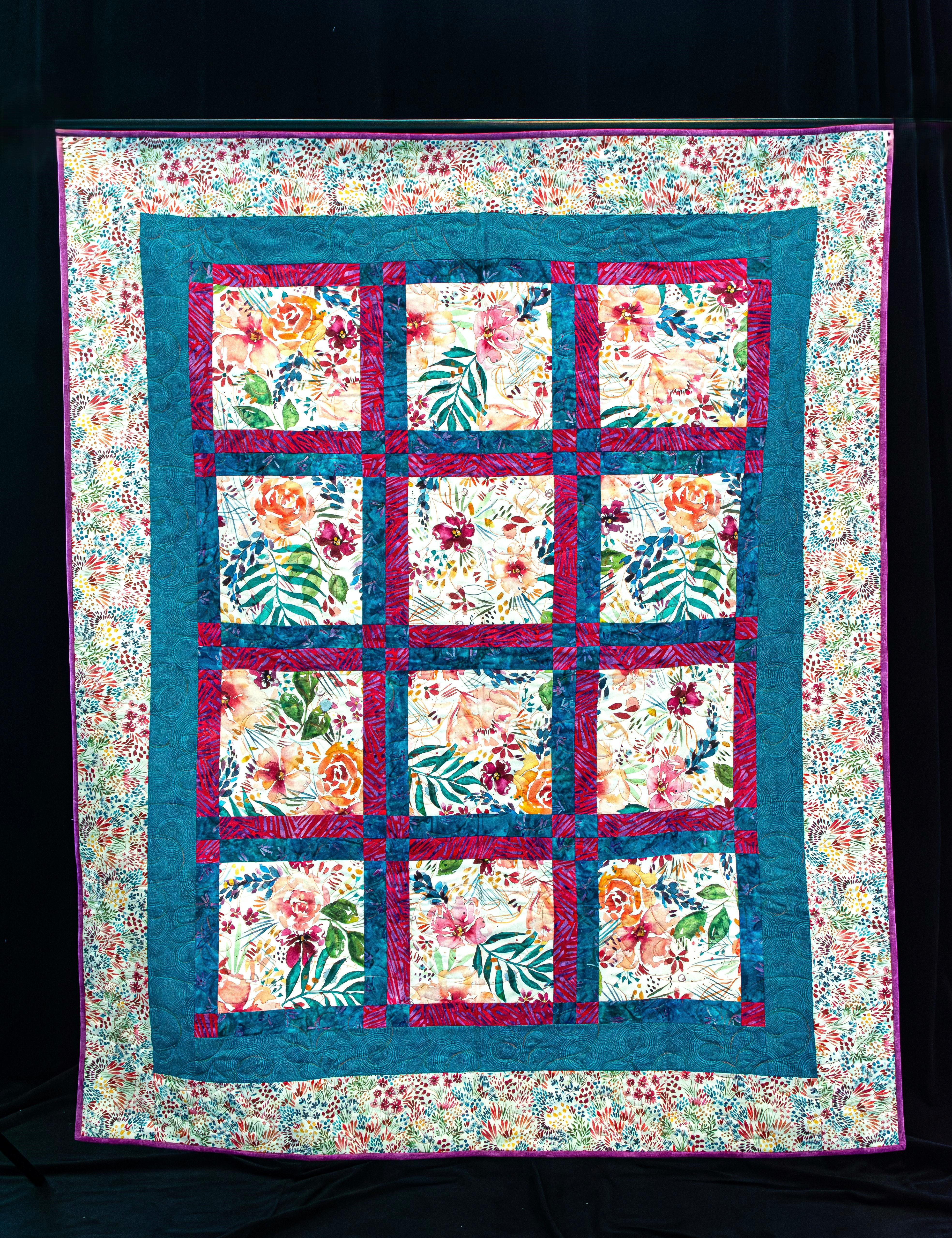 A beautiful flowery quilt. Created by Nancy A. Baker