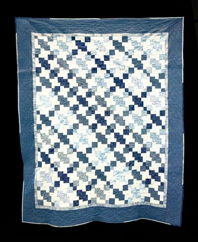 Disappearing 9-patch in various colors of blues and whites. Created by the Woodlands Area Quilt Guild - Community Quilts Bee.