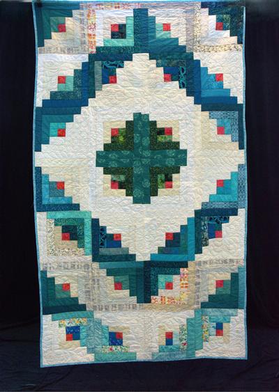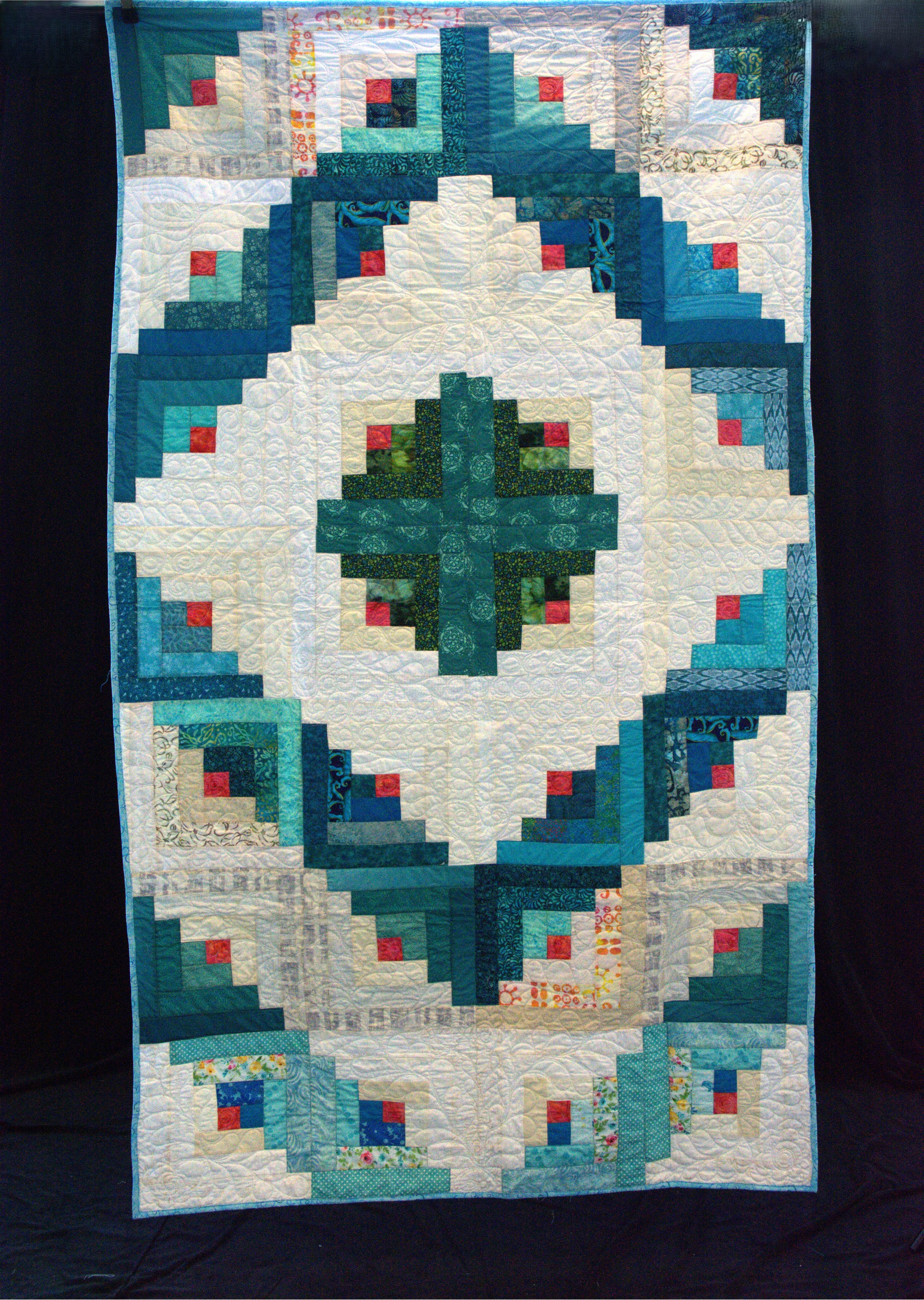 What a refreshing quilt using a traditional log cabin block with colors of nature. Created by members of the Cheeky Quilters.