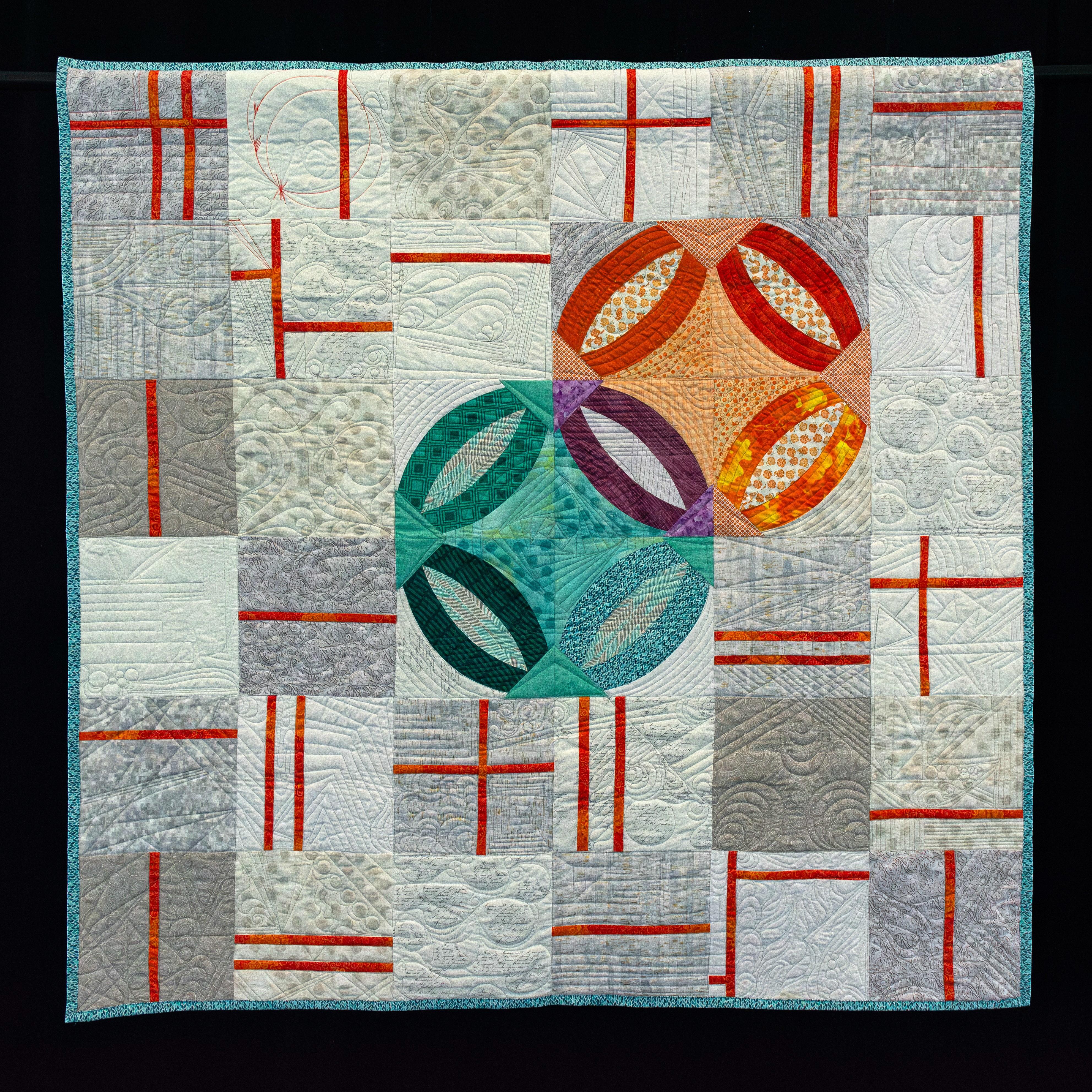 Contemporary quilt made by master quilters. This quilt is the latest in a series of collaborations that Linda Pearl and Cheryl Szynkawski have done for the benefit of the MD Anderson Cancer Center Quilt Project.
