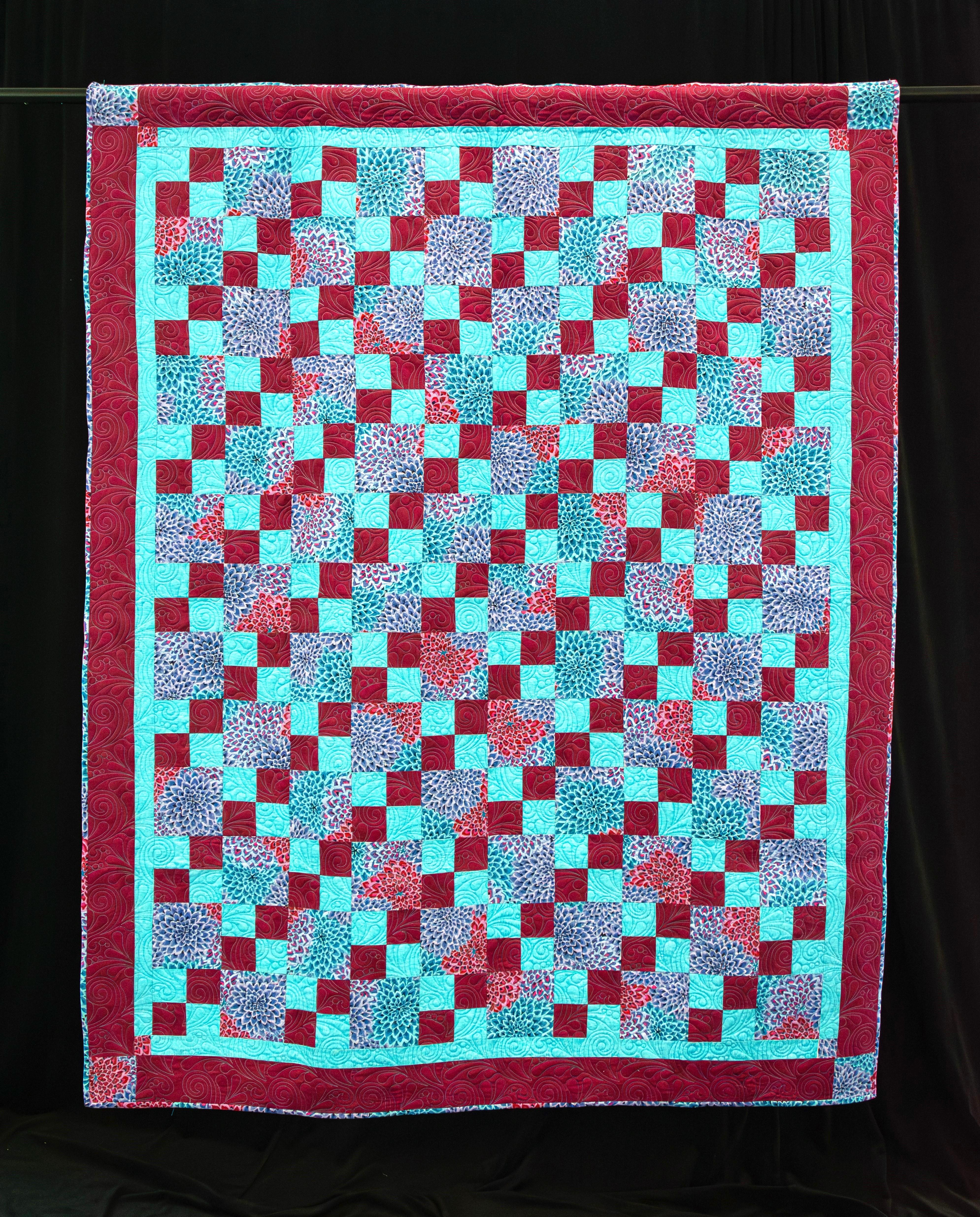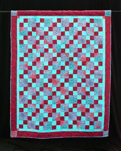 A perfect lap size quilt to snuggle under. Made with a stunning combination of colors. Created by Nancy Miller and quilted by JoAnn Monette.