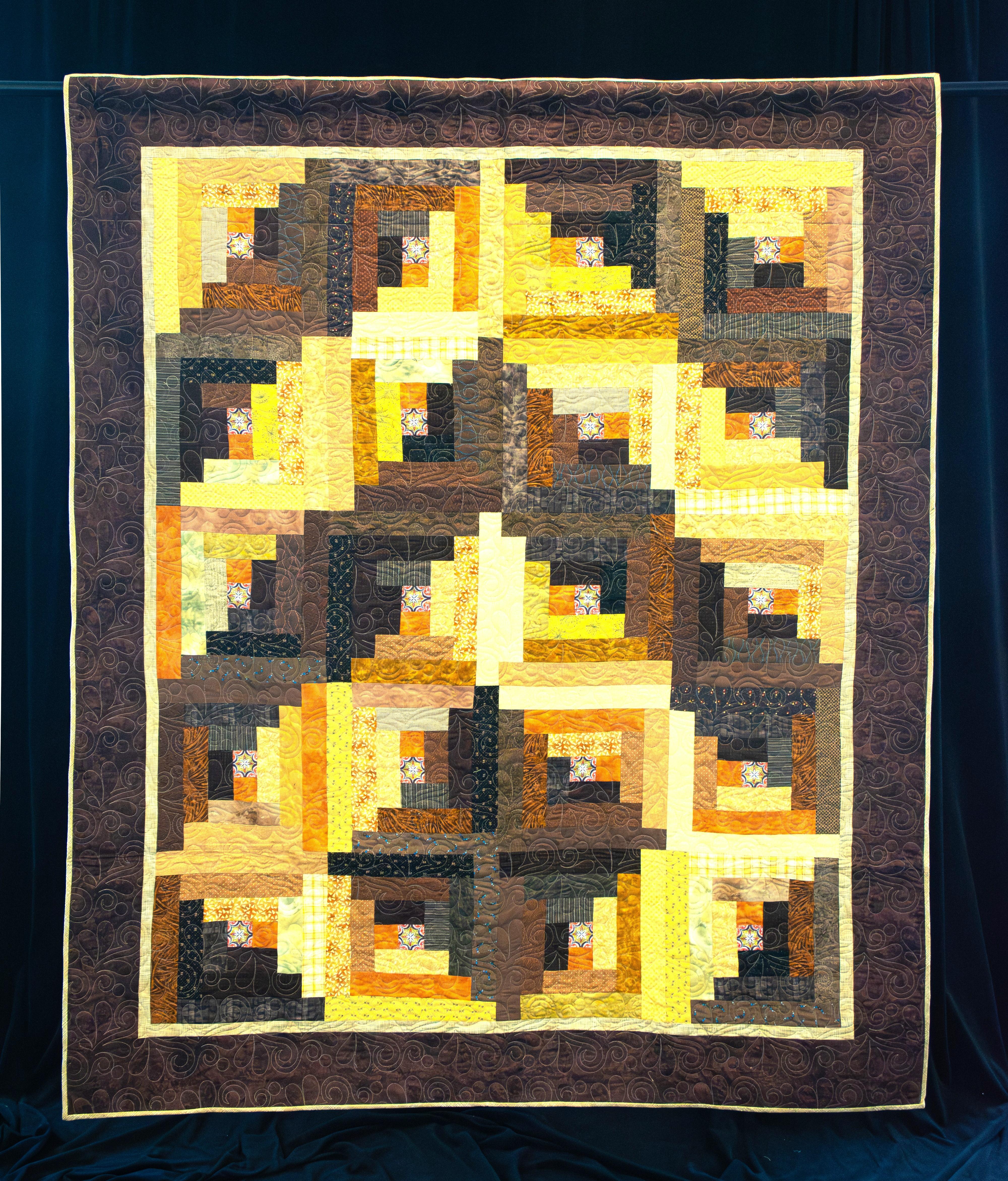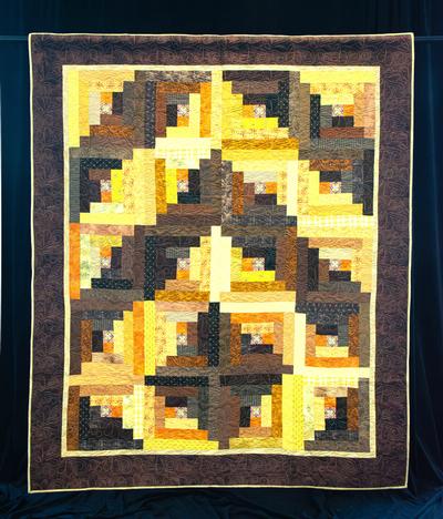 Log cabin blocks made with gorgeous autumn colors to depict the ups and downs of everyday life. Created by Lynda Beam Morse.