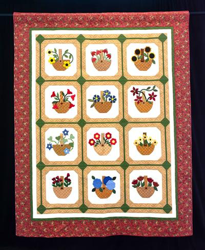 A passion for gardening. Hand appliqued flowers published in "Gathered from the Garden" Made by master quilter/published author Cindy Lammon.