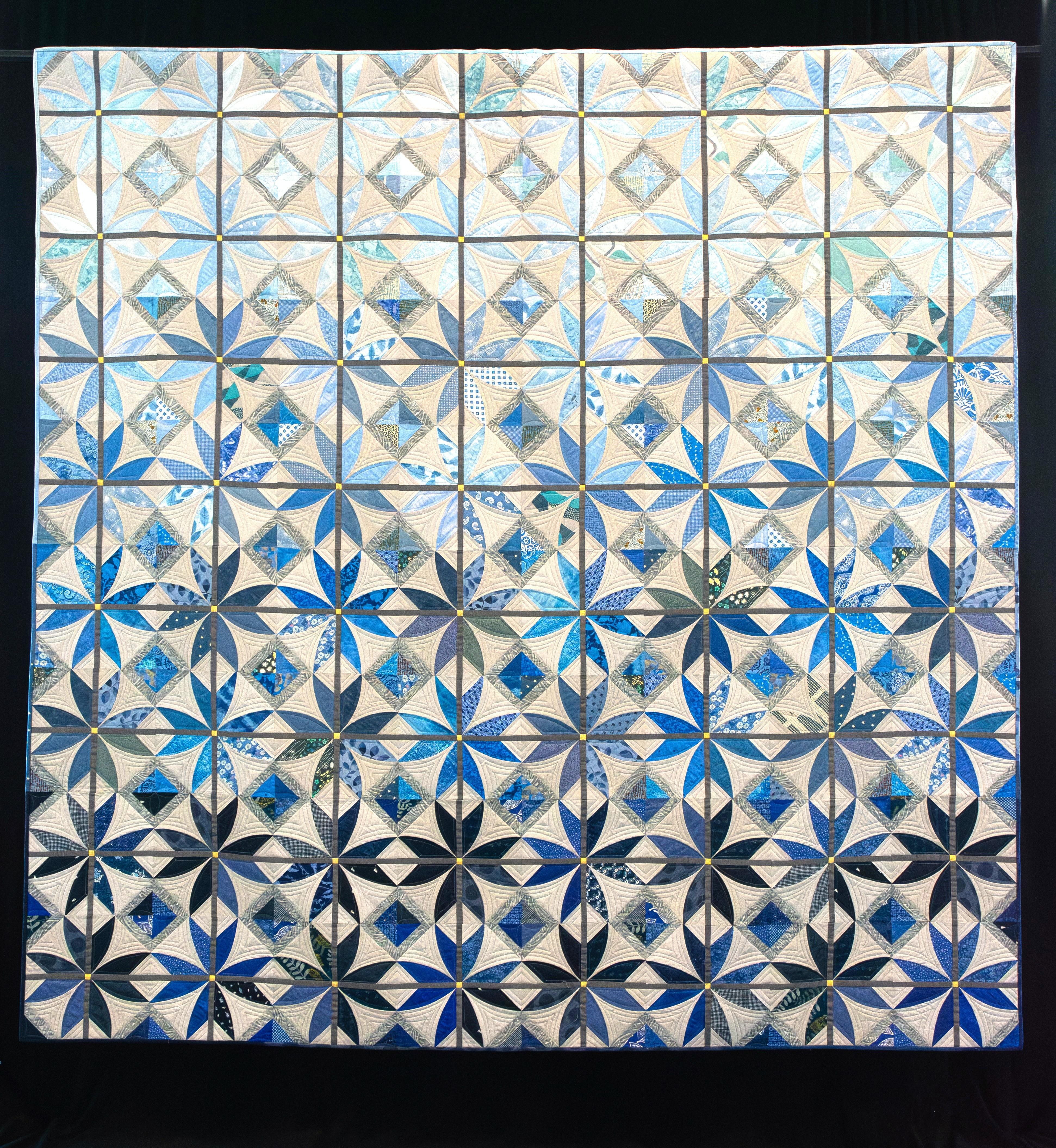 Queen size! The quilt was inspired by Spanish tiles. The gradation from light to dark makes this quilt like a treasured piece of art. Created by Judy Ahrar and Deepali Gupta.